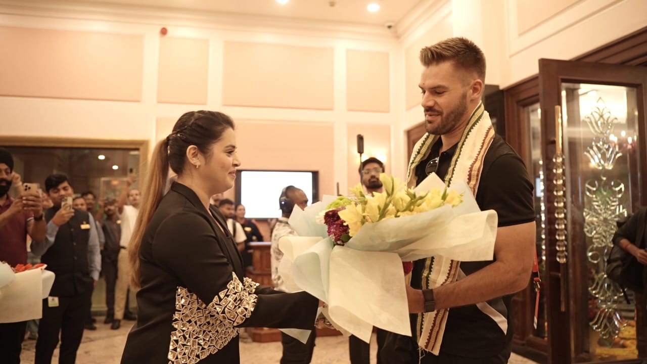 छत्तीसगढ़िया स्टाइल में हुआ दोनों टीमों का स्वागत