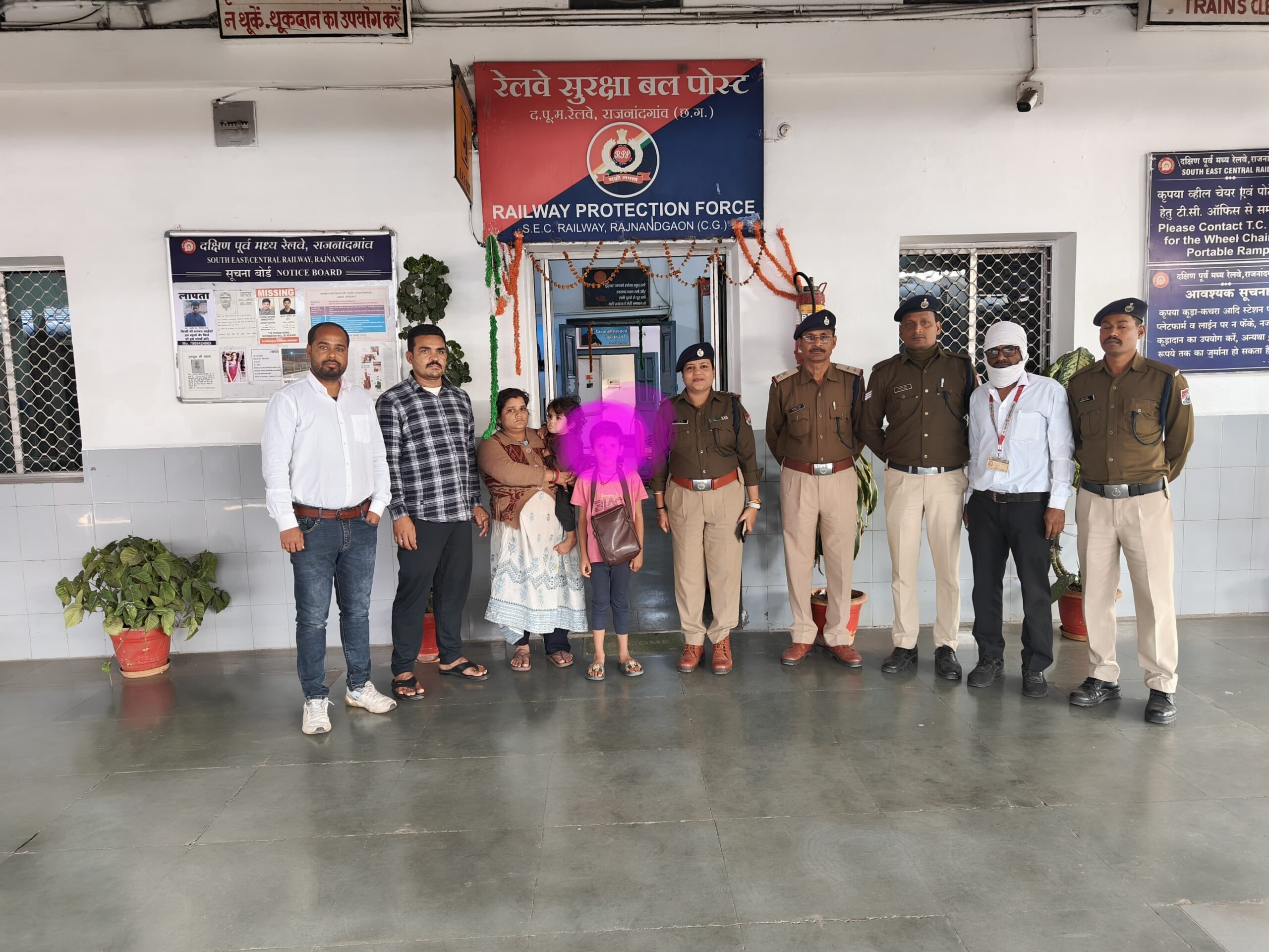 मंडल सुरक्षा आयुक्त नागपुर दीप चंद्र आर्य के निर्देशन में तथा रेलवे सुरक्षा बल पोस्ट प्रभारी राजनंदगांव,इंस्पेक्टर तरुणा साहू के सुपरविजन में, ट्रेन संख्या 17008 दरभंगा एक्सप्रेस के कोच संख्या B/3 में यात्रा कर रहे लगभग 10 वर्ष के नाबालिग बालक सौरभ मिश्रा को RPF द्वारा सकुशल बरामद किया गया।