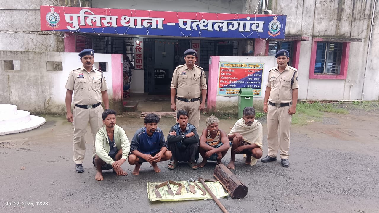 जसपुर : 27जुलाई 2025, छत्तीसगढ़ के जसपुर जिले के पत्थलगांव पुलिस ने गौवंश मांस के पांच तस्करों को गिरफ्तार कर भेजा जेल।सभी तस्कर गौ को वध कर मांस को अपने खाने के लिए बचा कर बेचते थे। गौ मांस का हिस्सा बटवारा करते पत्थलगांव पुलिस ने रंगे हाथ पकड़ा और भेज दिया जेल। बड़े बड़े औजार रखे थे तस्कर।
