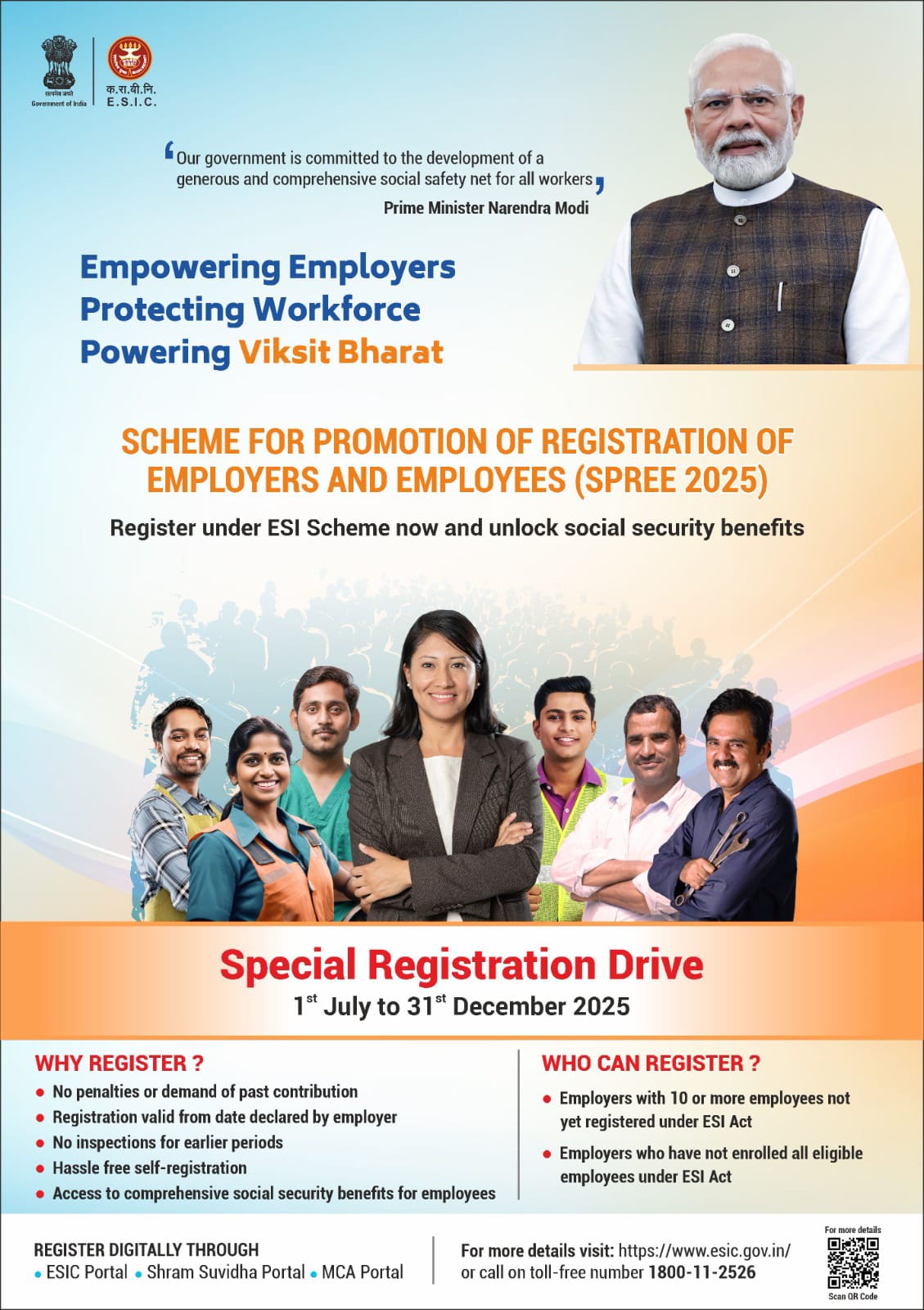 26 August, raipur,In a landmark step to strengthen India’s social security framework, the Government of India has rolled out the Scheme for Promotion of Registration of Employers and Employees (SPREE 2025) under the Employees’ State Insurance (ESI) Scheme. The special registration drive, open until December 31, 2025, offers employers and workers a fresh opportunity to come under statutory social protection.Prime Minister Narendra Modi, reaffirming the government’s commitment to worker welfare, said, “Our government is committed to the development of a generous and comprehensive social safety net for all workers.”The initiative seeks to bring lakhs of unregistered employees, including those in contractual and temporary jobs, into the ESI fold, ensuring access to healthcare, maternity support, financial protection, and other benefits. Employers enrolling under SPREE 2025 will enjoy significant relaxations—no penalties or retrospective demands for past contributions, no inspections for earlier periods, and registration valid from the date declared by the employer.A major thrust of the campaign is in Chhattisgarh, where the Employees’ State Insurance Corporation (ESIC) is conducting awareness drives, help desks, and seminars through its regional and sub-regional offices in Raipur, Bilaspur, Korba, and Durg. Employers with 10 or more workers not yet covered under the ESI Act, or those who have not enrolled all eligible employees, can register voluntarily via digital platforms such as the ESIC Portal, Shram Suvidha Portal, or MCA Portal.“SPREE 2025 is a golden opportunity for employers to comply voluntarily and ensure their workforce gets rightful access to medical care, maternity support, and other social security benefits. Our focus is to make the process simple, transparent, and beneficial for all stakeholders,” said an Ratnesh Rajanya, Deputy Director ESIC, Raipur.In addition to SPREE 2025, the government has approved an Amnesty Scheme 2025, running from October 1, 2025 to September 30, 2026, offering employers a one-time window to settle disputes and pending litigations under the ESI Act.The ESIC has appealed to industries, MSMEs, service sector establishments, and trade bodies to actively participate in SPREE 2025 and extend the benefits of social security to all eligible workers.For registrations, employers can visit www.esic.gov.in or contact the toll-free helpline 1800-11-2526.
