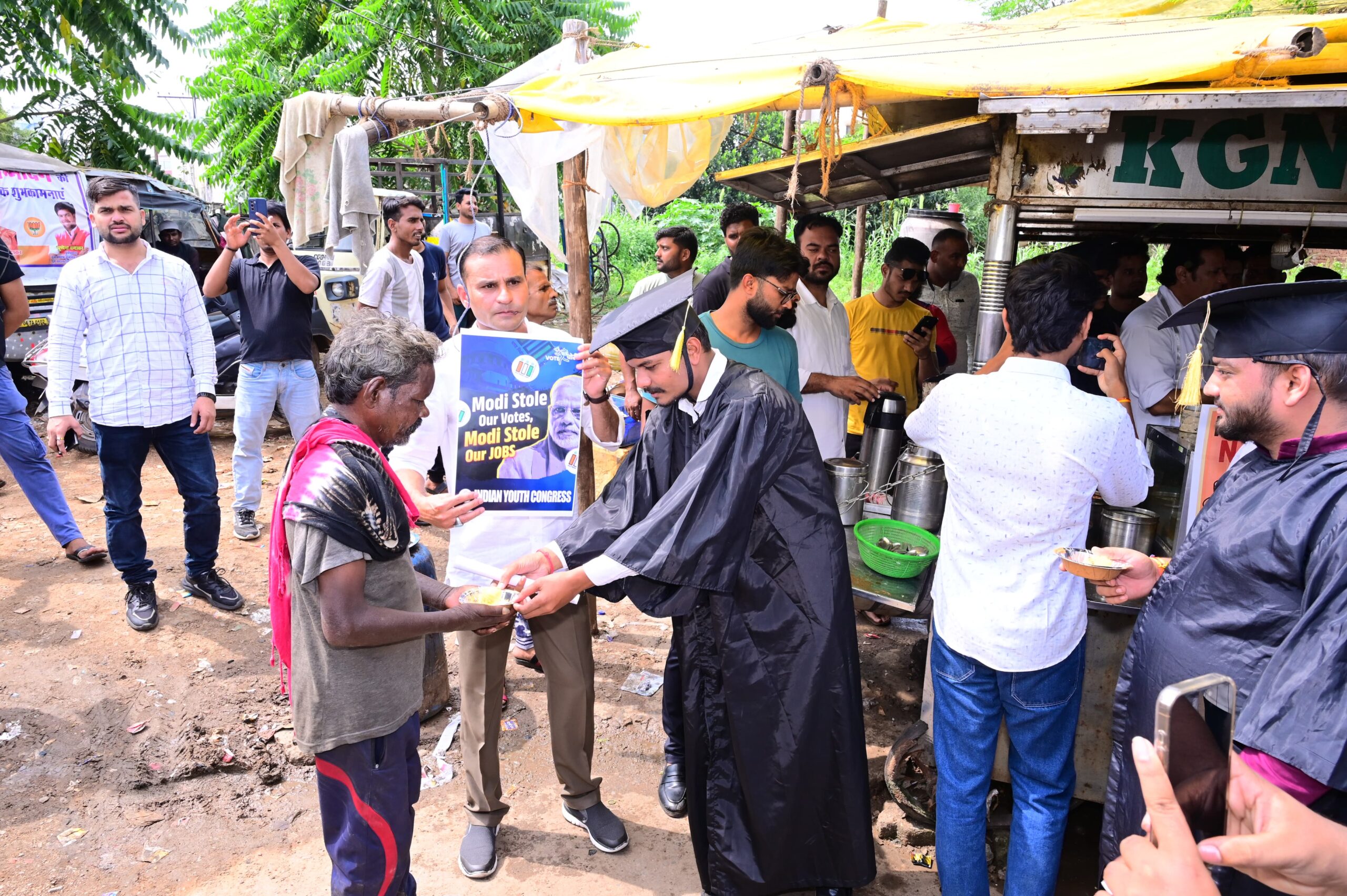 रायपुर, 17 सितंबर 2025:रायपुर शहर युवा कांग्रेस द्वारा आज राजधानी रायपुर में प्रधानमंत्री नरेंद्र मोदी के जन्मदिन को राष्ट्रीय बेरोजगारी दिवस के रूप में मनाया गया। देश में लगातार बढ़ती बेरोजगारी दर और युवाओं को रोजगार उपलब्ध न होने की गंभीर समस्या को लेकर शहर जिला युवा कांग्रेस अध्यक्ष विनोद कश्यप के नेतृत्व में कार्यकर्ताओं ने रसबंदा मैदान में अनोखे अंदाज में विरोध दर्ज कराया।