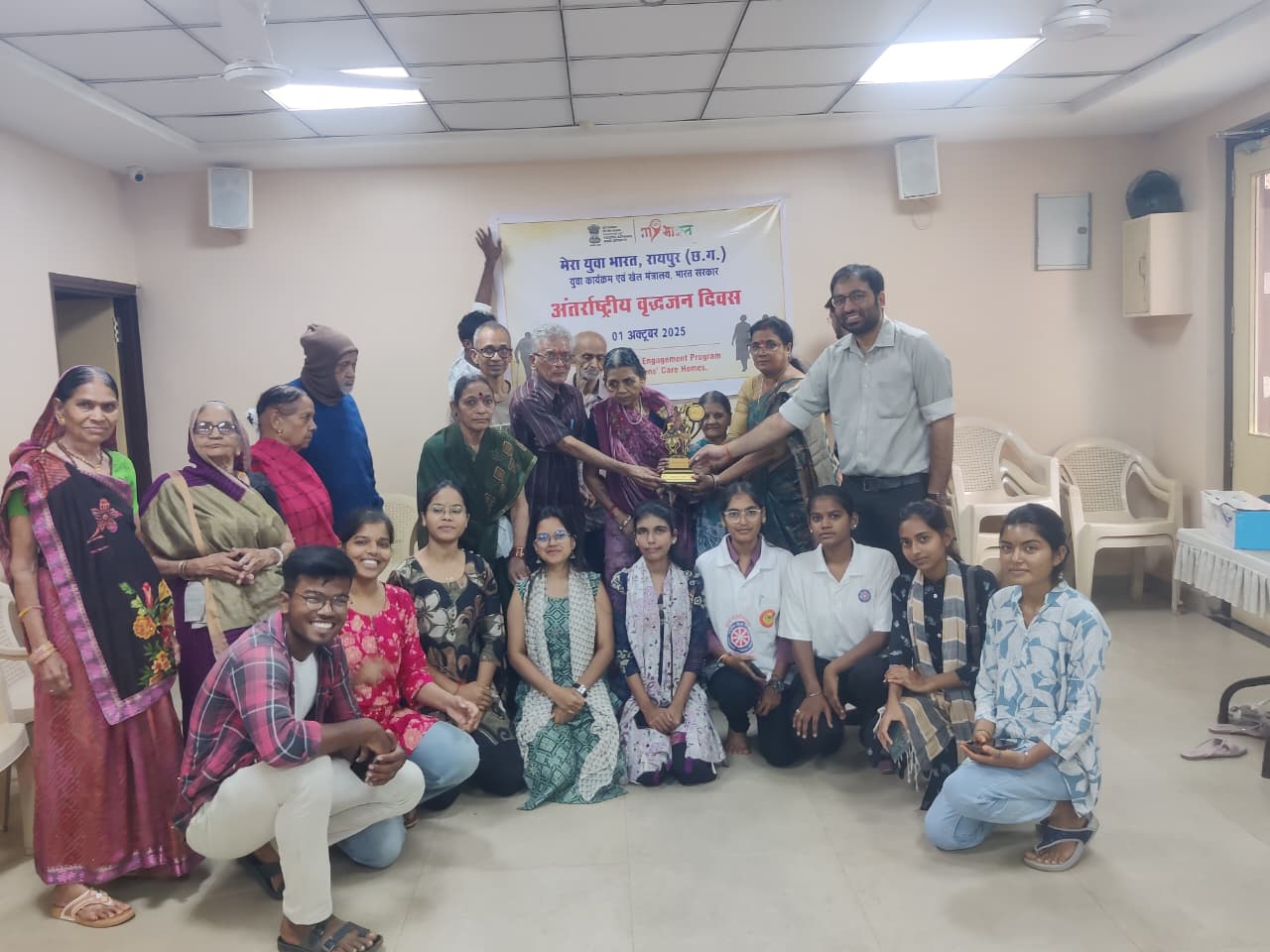 3 october, raipur,To mark the International Day of Older Persons, MY Bharat Raipur, under the aegis of the Ministry of Youth Affairs & Sports, organized a three-day volunteer engagement program across senior citizen care homes in the city. More than 30 volunteers from MY Bharat and the National Service Scheme (NSS) actively participated, reaching out to over 60 elderly residents at Chitvan Happy Home, Prashamak Dekh-Rekh Grih, and Manohar Jeevan Kalyan Vridha Niwas.Speaking on the occasion, Arpit Tiwari, Deputy Director of MY Bharat, explained that the initiative was designed to give young people a structured opportunity to serve in senior citizens’ care homes. He emphasized that the program sought to enhance the emotional well-being of elderly residents through companionship, recreational and cultural activities, while also fostering mutual respect and intergenerational learning between youth and the older generation. He added that the engagement was not a one-time event but a step toward developing a sustainable, district-level framework for volunteerism that can be scaled and replicated.Over the course of three days, volunteers immersed themselves in a wide range of activities — from warm conversations and listening to residents’ life stories, to helping them navigate mobile phones and video calls, assisting in cultural celebrations, and leading recreational games, music, and creative crafts. They also collaborated in hygiene and wellness awareness sessions facilitated by staff and documented memories and reflections through creative writing and group discussions. The initiative concluded with a collective reflection exercise, where volunteers shared their learnings and personal growth from the experience.Sunita Chansoriya, Programme Officer of NSS at Durga College, highlighted the importance of such efforts, stating, “It is vital for young people to spend time in these institutions, connect with the older generation, and learn from their experiences. Compassion for our elders is not only a moral value but also a civic duty.” Ratri Lahiri from gurukul college was also present in the program.The outcomes of the program were significant. For the elderly, it brought companionship, joy, and greater social interaction, contributing positively to their emotional well-being. For the youth, it was a lesson in empathy, discipline, and civic responsibility, shaping them as more conscious and engaged citizens. Most importantly, the program laid the foundation for creating a structured mechanism at the district level to sustain such volunteer-driven initiatives, ensuring that intergenerational bonds continue to thrive in the years ahead.